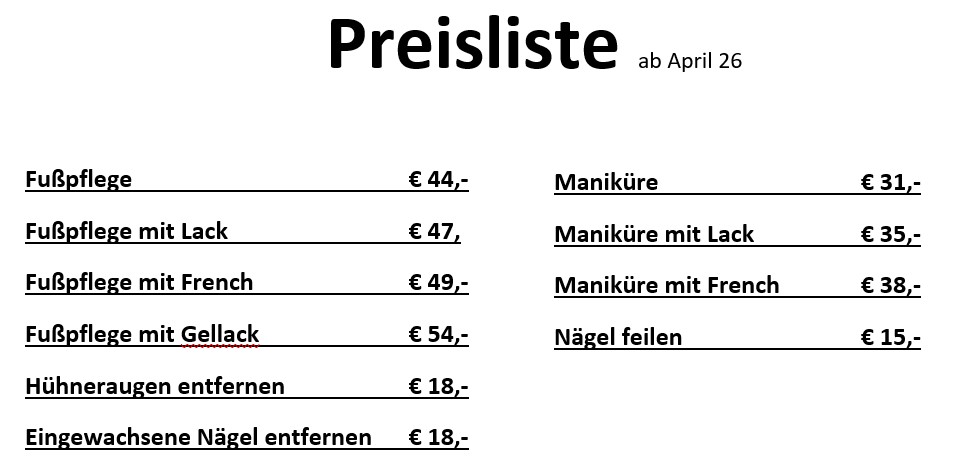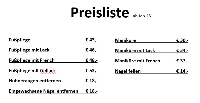 Preise gültig für mobile Fußpflege im Radius von 20km von Zwettl a.d. Rodl
